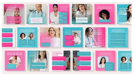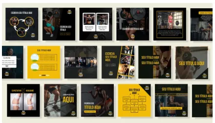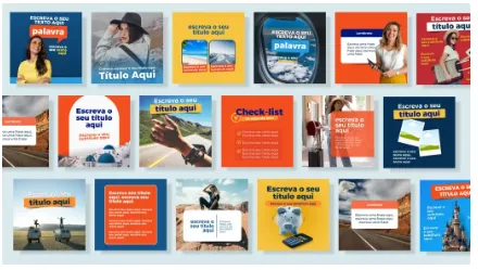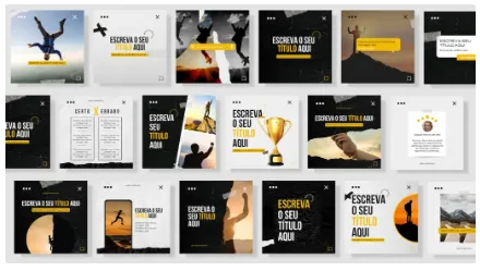 Basta duplicar, trocar texto, logo e cor. Zero layout do zero, zero sofrimento em design.